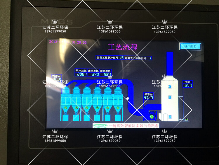 除塵器加裝了相關(guān)檢測的儀器儀表、通過PLC程序控制自動(dòng)運(yùn)行,通過觸目屏展示。