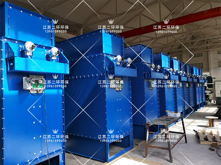 9、此時(shí),瞬間接通脈沖電源,電磁脈沖閥開啟,4公斤以上壓力的壓縮空氣瞬間引入周邊空氣作為二次放大的充足氣源,一并高壓噴吹打入濾筒。使褶皺的濾筒瞬間膨脹變形鼓起,而產(chǎn)生振動(dòng),在高壓脈沖氣流沖刷的作用下,附著在濾筒外表面上的粉塵被一掃而光,掉入除塵器底部收集粉塵的灰斗收塵箱中。