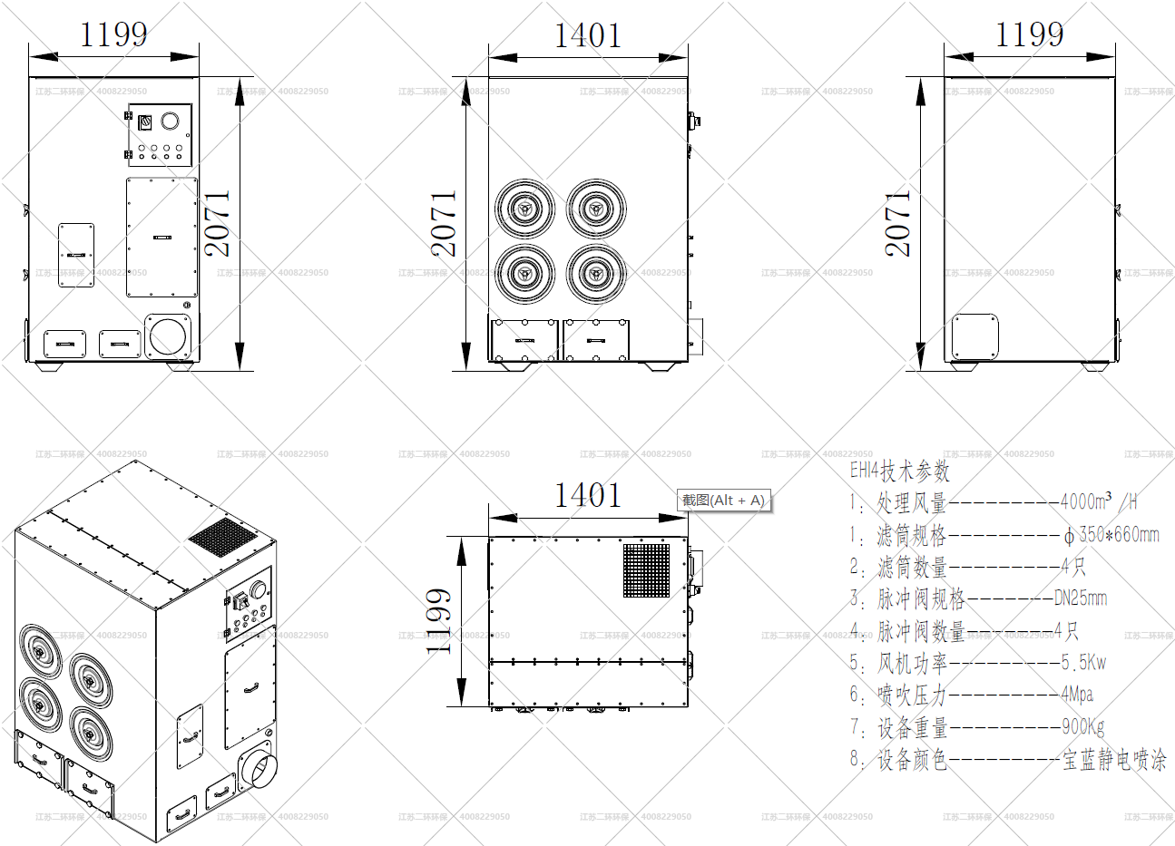EHI-4N型激光切割濾筒除塵器技術(shù)圖(下圖)